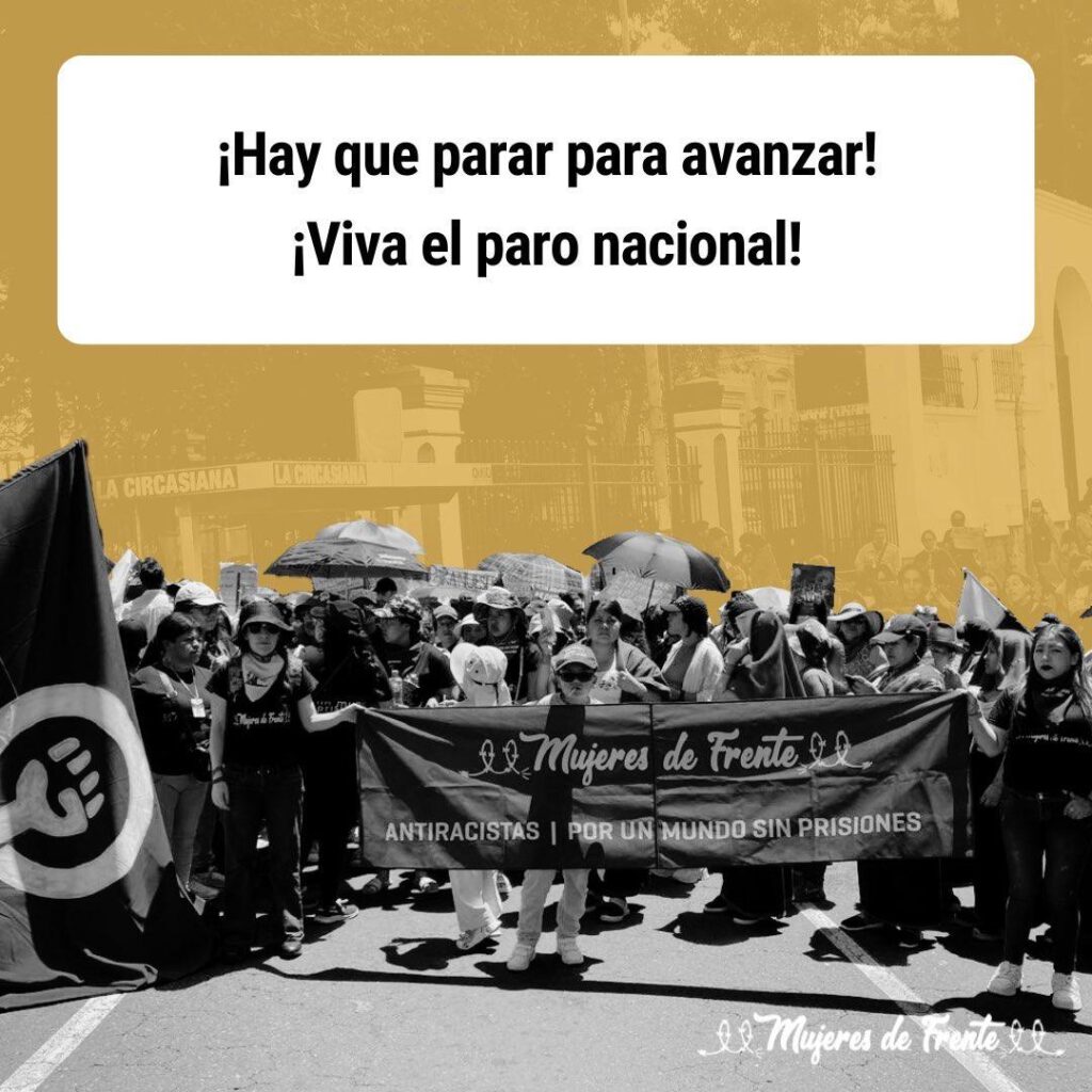 Entonces, hay una estrategia de uso de los cuerpos en prisión para entrenamiento militar. De hecho, otra compañera que sí ha pasado por prisión y cuyo hijo está preso actualmente, trataba de explicar en esta misma conversación por qué en las cárceles militarizadas donde ya existía una vida cotidiana con los militares responsables de la custodia, de manera imprevista entraban de madrugada comandos militares, torturaban a la gente y se iban. Eran comandos de militares diferentes de los responsables de la custodia cotidiana, cuya única misión era entrar, torturar y salir. Entonces, logramos entender que eso era parte de este entrenamiento antiterrorista, en realidad, contrainsurgente. Por eso, nosotras decimos que la manera en que el gobierno está logrando contener el paro –porque el paro está contenido, el paro no está logrando encenderse justamente por una estrategia de producción de violencia y terror que viene de años– es esta. No están improvisando. Y por eso, nosotras decimos que la perspectiva feminista es crucial para lograr entender lo que están haciendo con nuestros hijos, al menos con los hijos presos de muchas compañeras a los que deliberadamente se está haciendo hombres para la guerra con complicidad de ellos mismos. Ellos encuentran su humanidad en la masculinidad que afirman no solamente en la tenencia de armas, en el sufrimiento y en la producción de violencia, sino también contra las mujeres, los niños y las niñas.