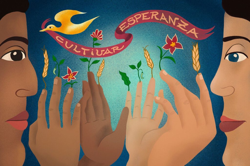«Cultivar la esperanza», Ilustración digital por @Pazconadie, cedida por Ojala.mx